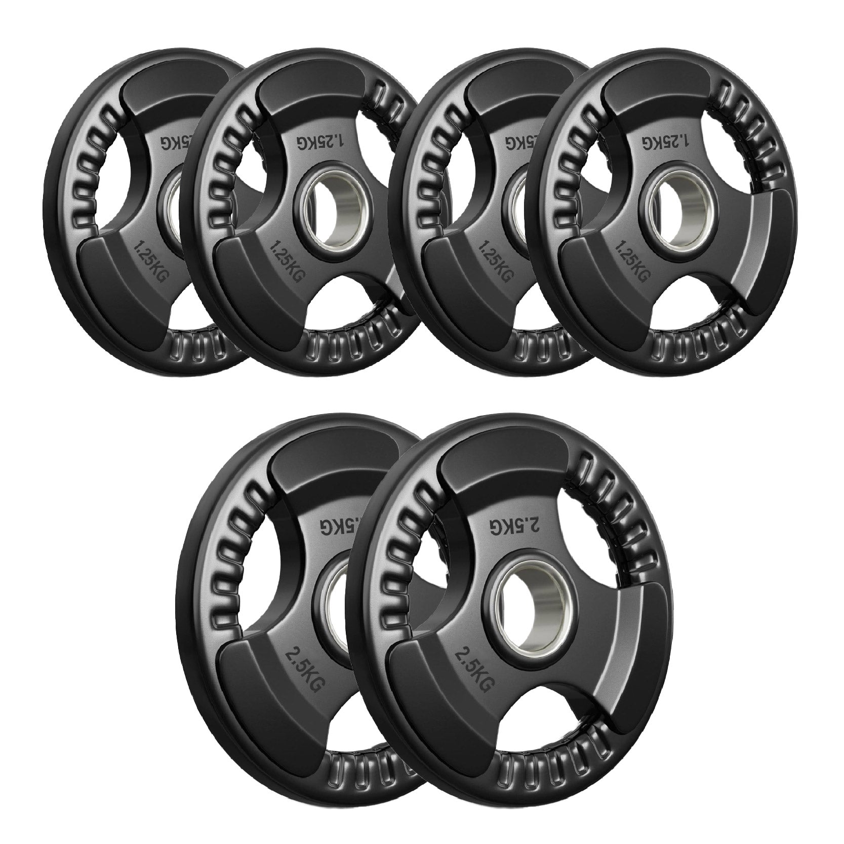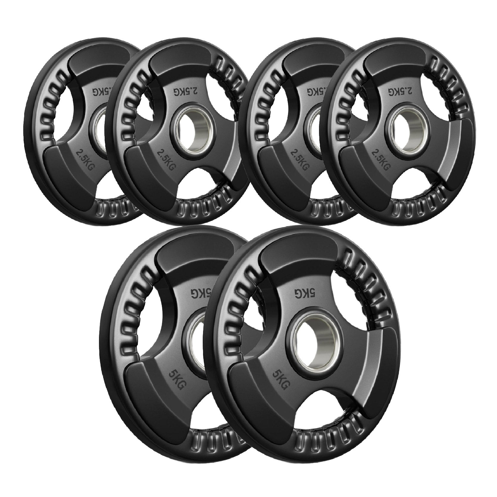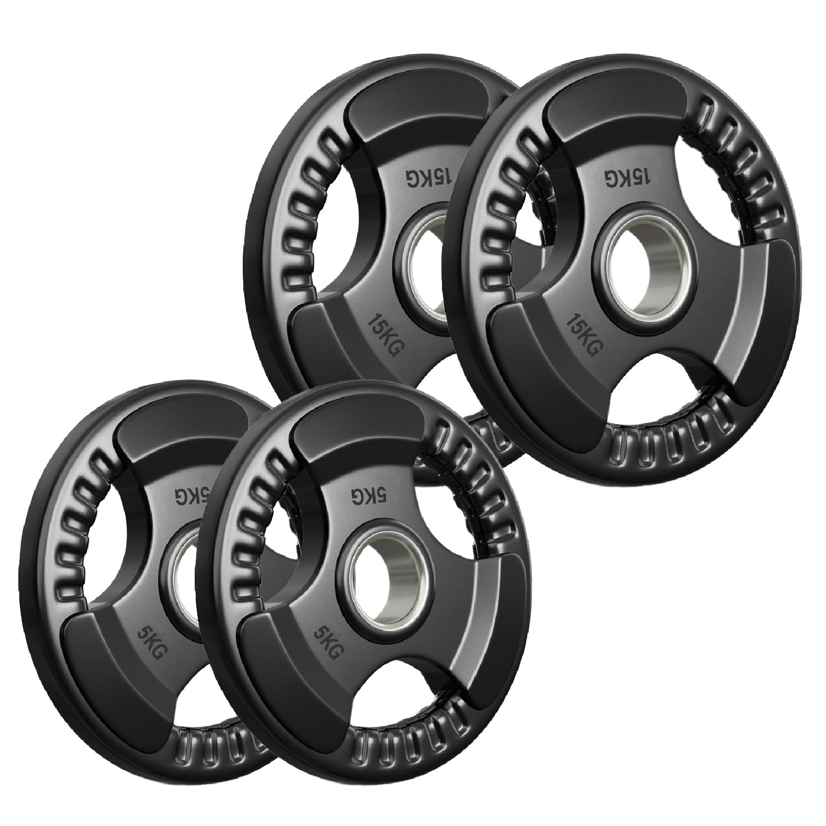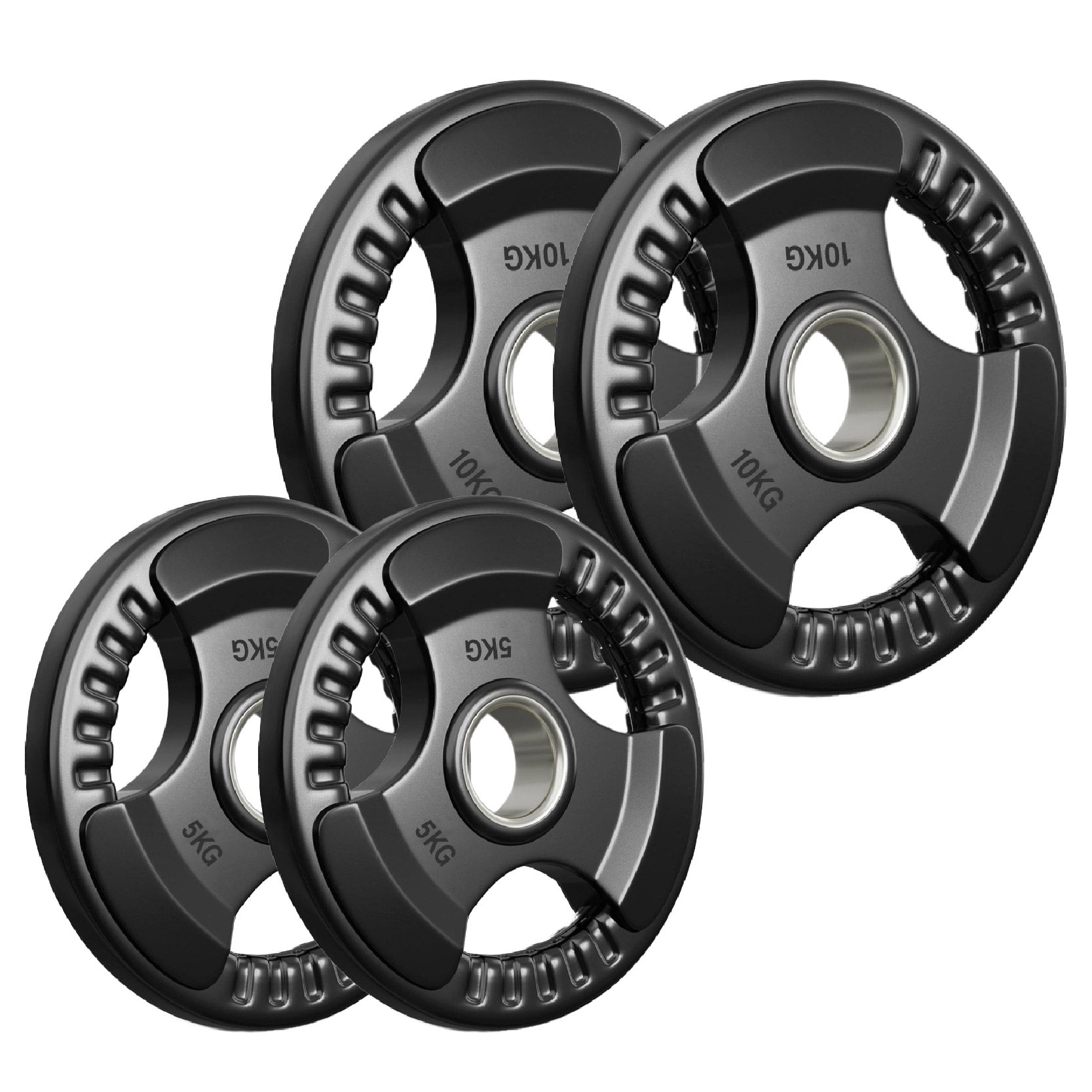 Encased in a durable black rubber coating, these plates offer superior floor protection, noise reduction, and resistance to chipping and corrosion, making them ideal for both home gyms and commercial fitness facilities. Designed to fit all standard 2-inch Olympic barbells, dumbbell handles, and plate-loaded machines, these versatile weight plates ensure seamless compatibility with your existing equipment. Whether you're focusing on strength gains, muscle definition, or functional training, these Tri-Grip Olympic Weight Plates provide the performance, safety, and convenience serious lifters demand.