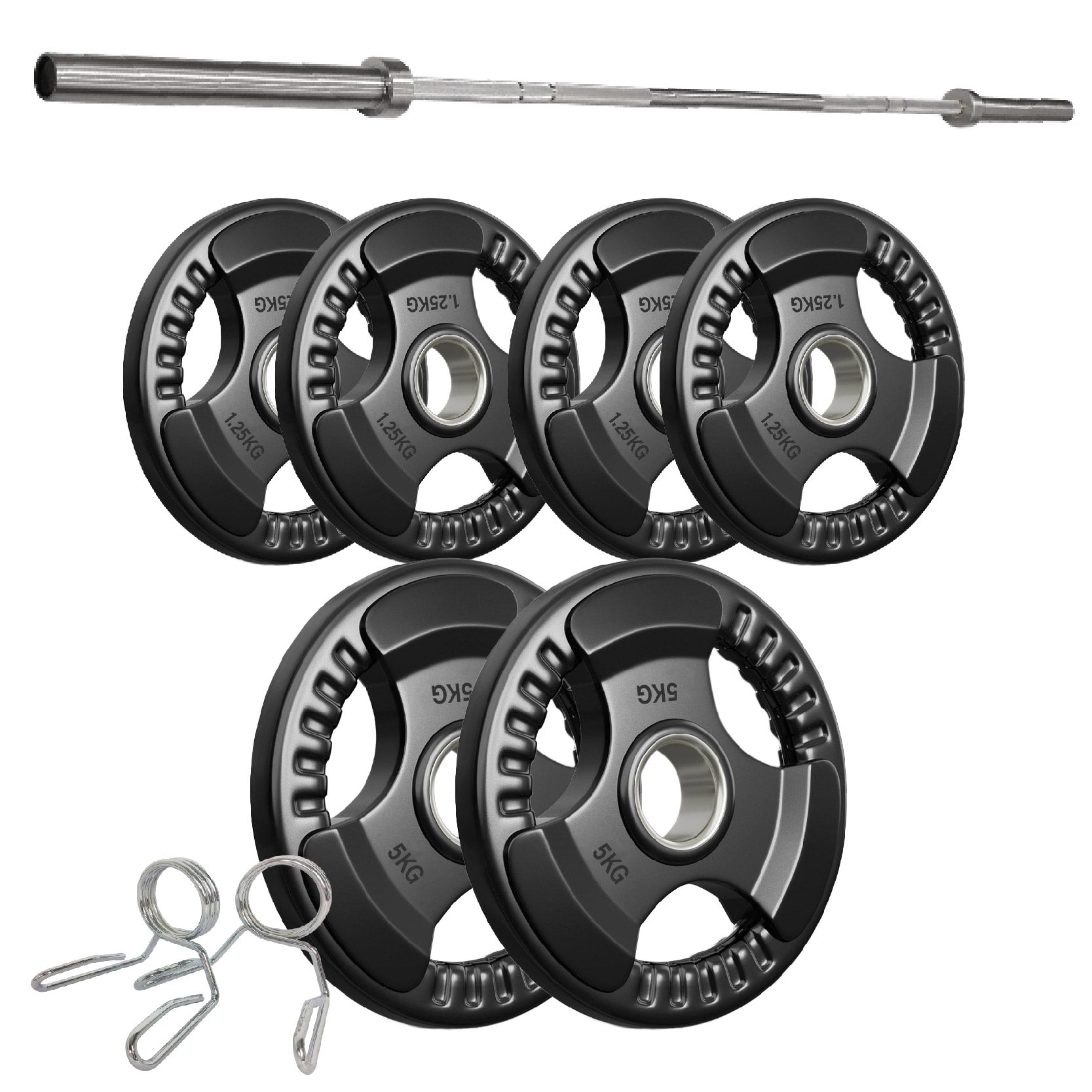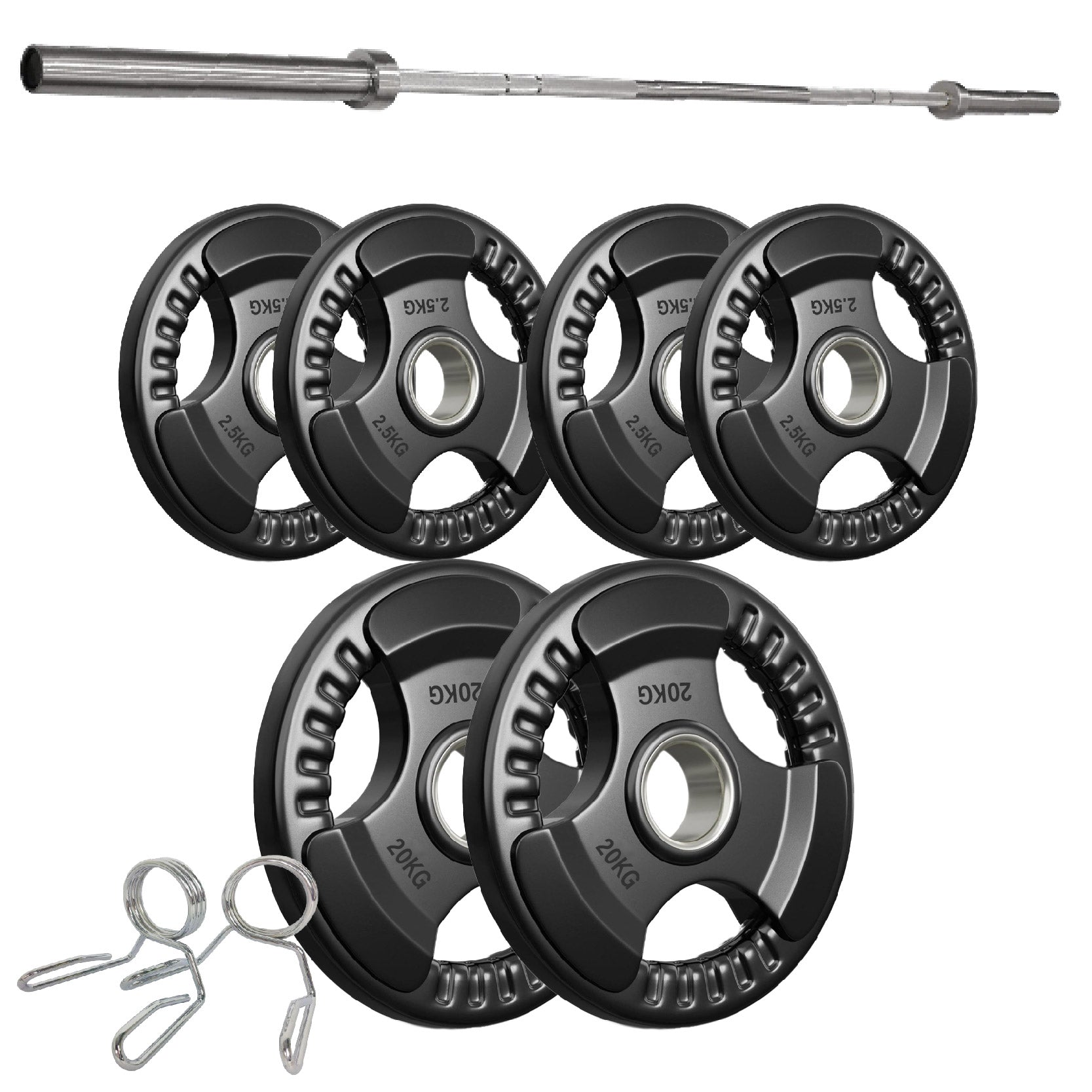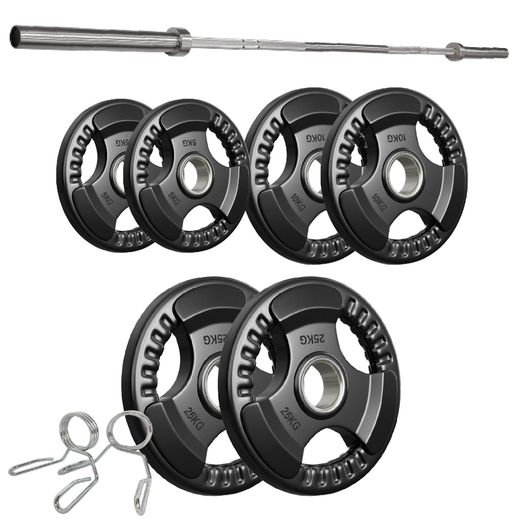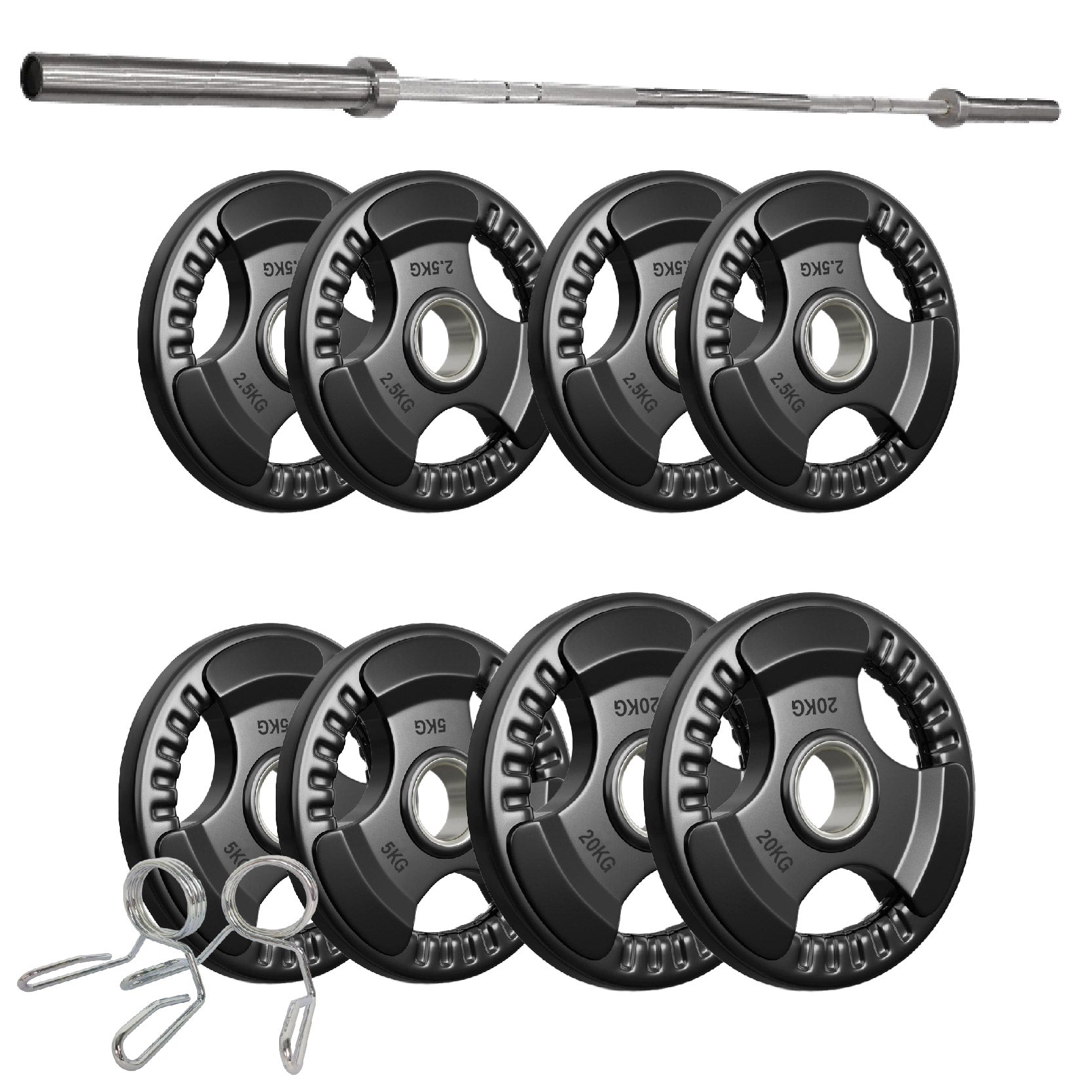 Encased in a durable black rubber coating, these plates offer superior floor protection, noise reduction, and resistance to chipping and corrosion, making them ideal for both home gyms and commercial fitness facilities. Designed to fit all standard 2-inch Olympic barbells, dumbbell handles, and plate-loaded machines, these versatile weight plates ensure seamless compatibility with your existing equipment. Whether you're focusing on strength gains, muscle definition, or functional training, these Tri-Grip Olympic Weight Plates provide the performance, safety, and convenience serious lifters demand.
